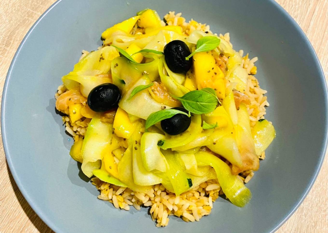 Hello everybody, it's me again, Dan, welcome to my recipe page. Today, I'm gonna show you how to prepare a special dish, Pokebowl revisité saumon, courgette et mangue. One of my favorites food recipes. This time, I'm gonna make it a little bit tasty. This is gonna smell and look delicious.