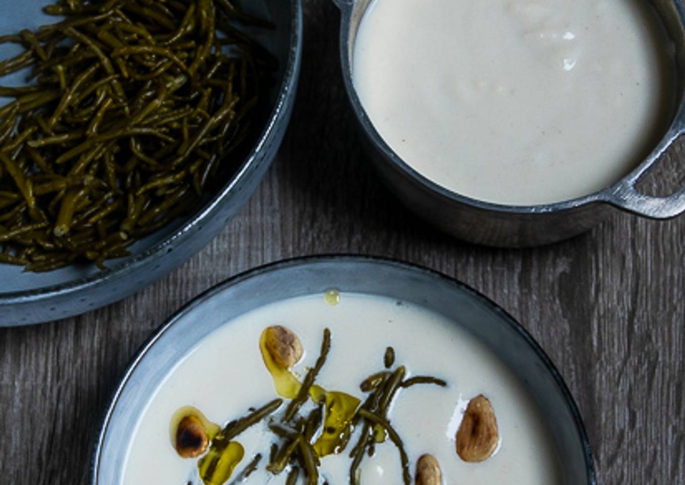 Surprenant et très bon ! Un velouté de chou-fleur et salicornes goutu crémeux et délicieusement savoureux. #février