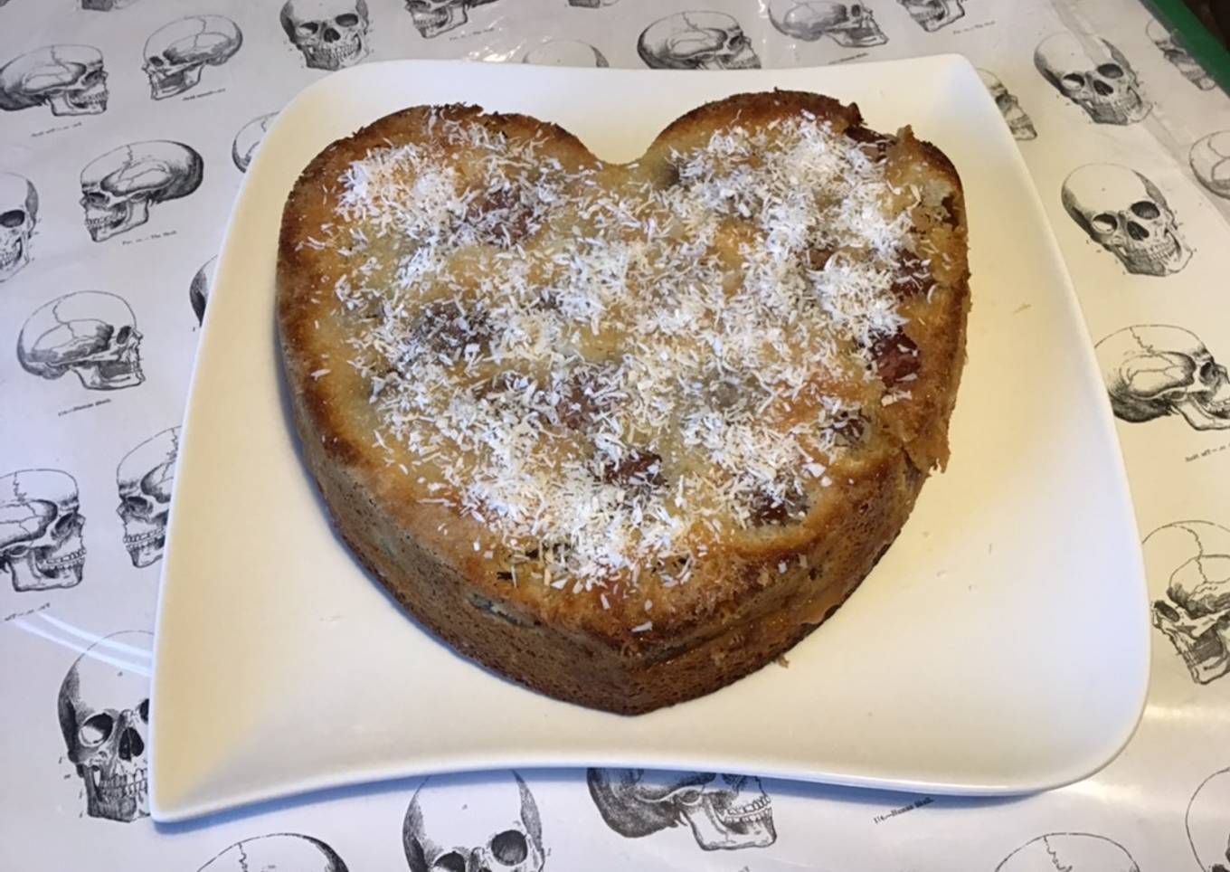 Gâteau saint Valentin aux prunes d'ente et noix de coco