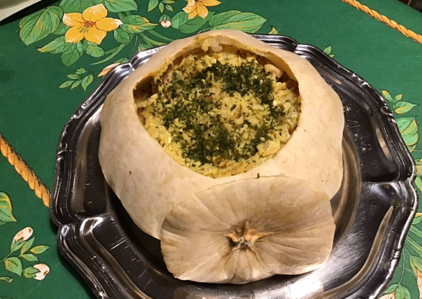 Pâtisson farci au riz,lard fumé,feta et épices