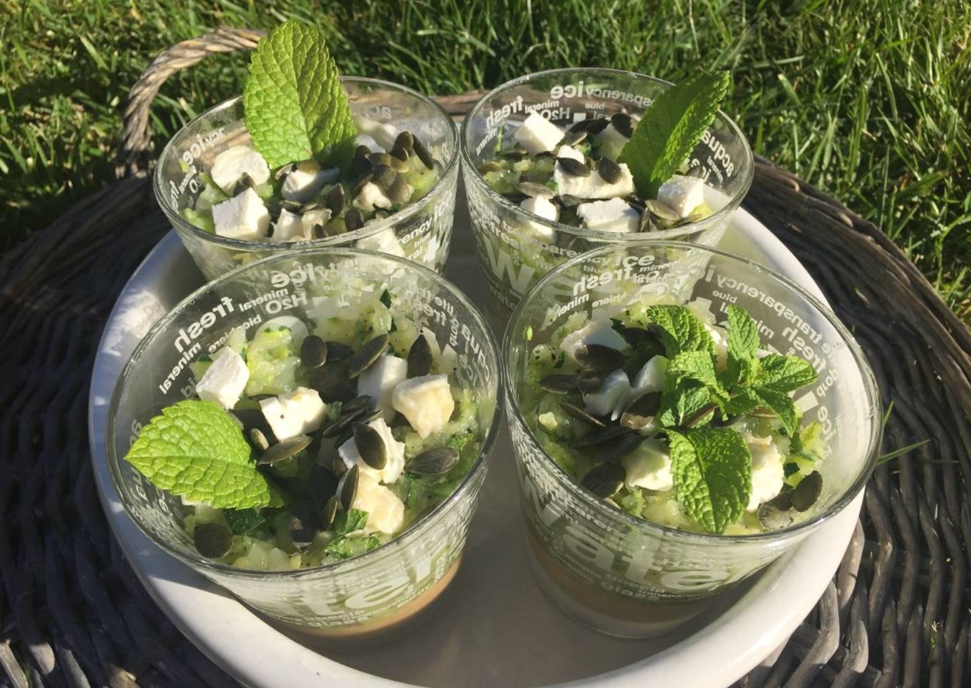 La chaleur de ces derniers jours m'a inspiré cette recette pour un repas apéro de fin de journée. Les ingrédients sont locaux, sauf les graines (Bio). Recette préparée avec les produits de #laruchequiditoui