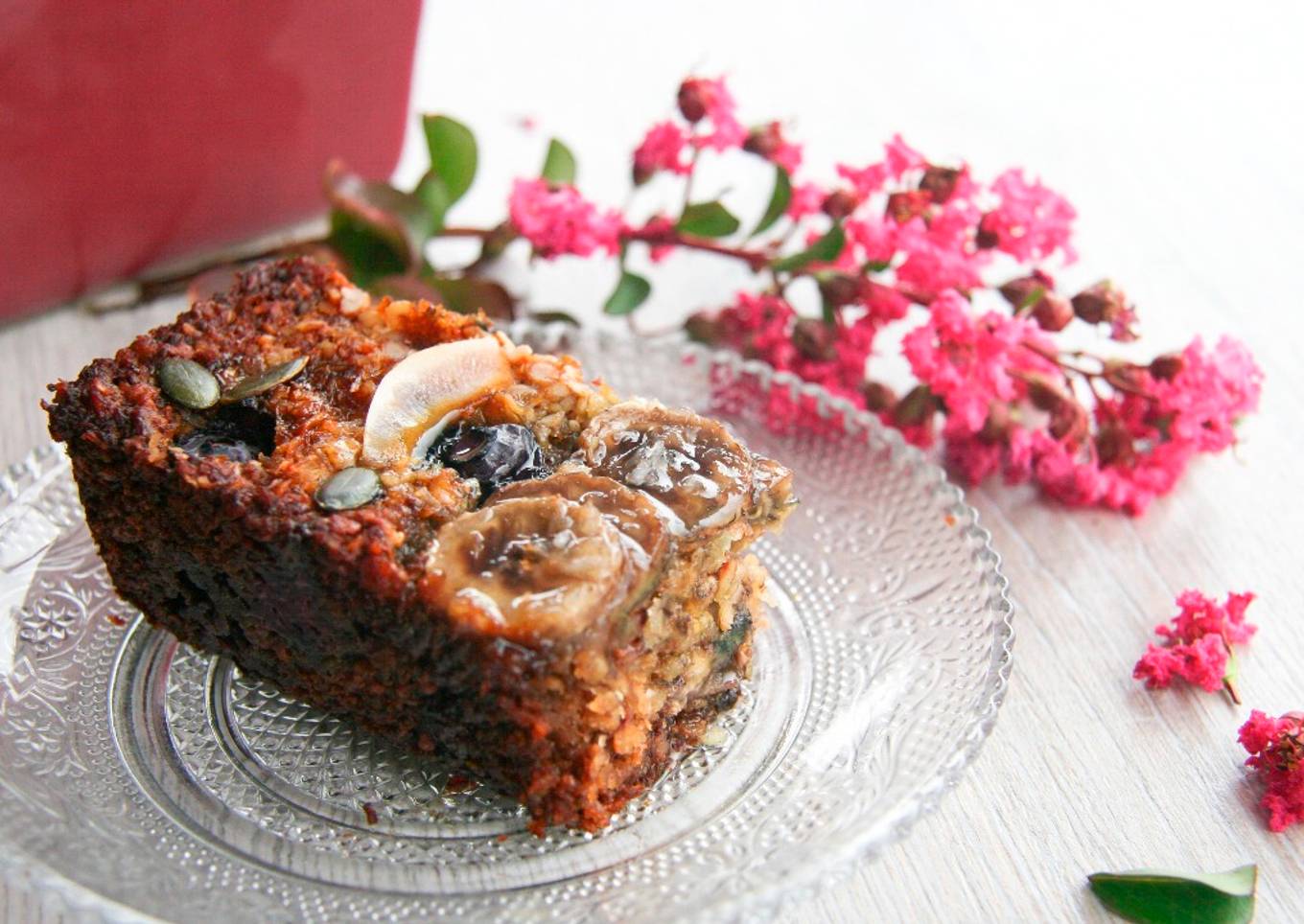 - Préchauffez votre four à 180°c. Mélangez ensemble, dans un grand saladier, tous les ingrédients secs : les flocons d'avoine, de sarrasin et de quinoa, les graines de lin et de courge, les fruits secs et le bicarbonate. Ajoutez l'huile de coco fondue, le miel, les fruits frais et lait de coco. Graissez un plat allant au four.